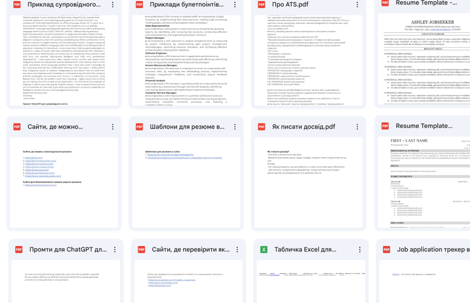 13 шаблонів (CV, CL, AI-промпти) - бери й вставляй